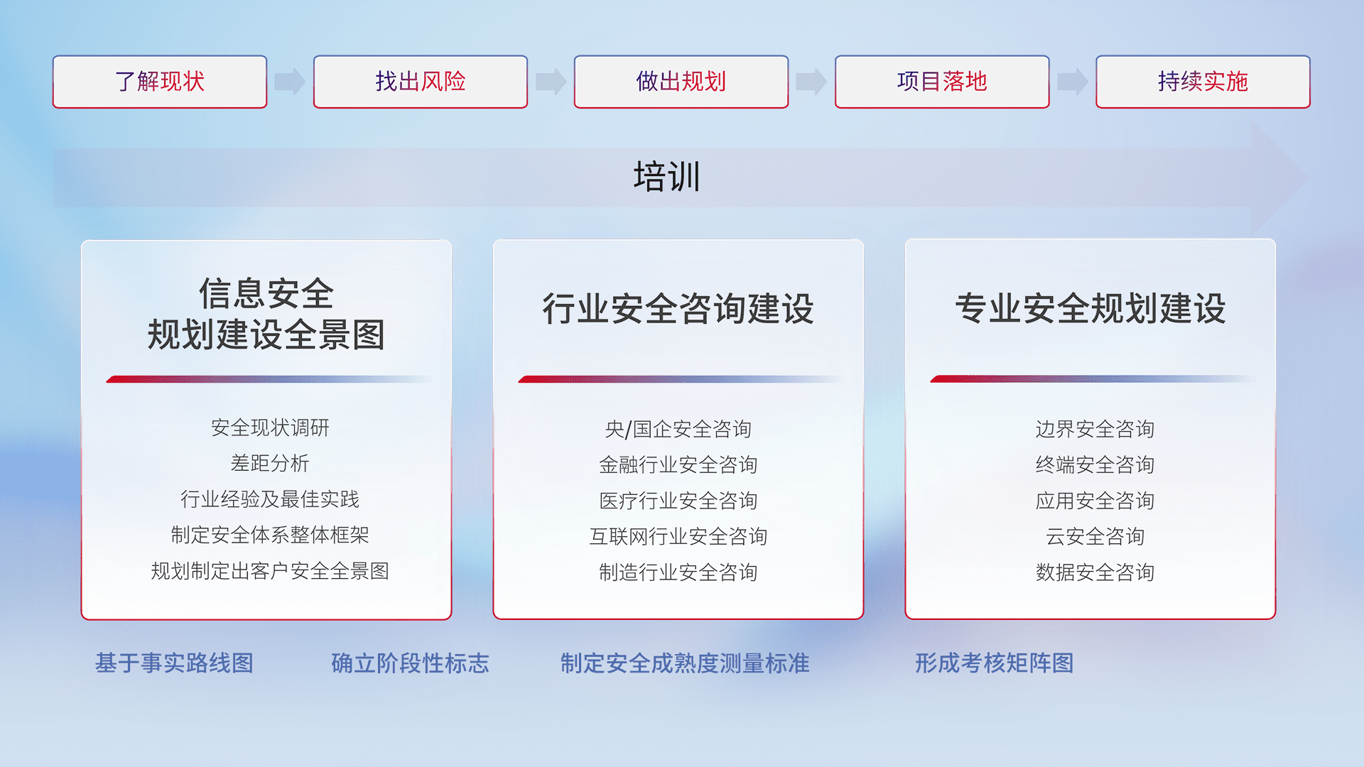 针对客户行业特性,,将宏观的安全战略和需求,,通过专业的交付服务,,实现项目落地,,为客户提供标准规范的集成交付服务。。